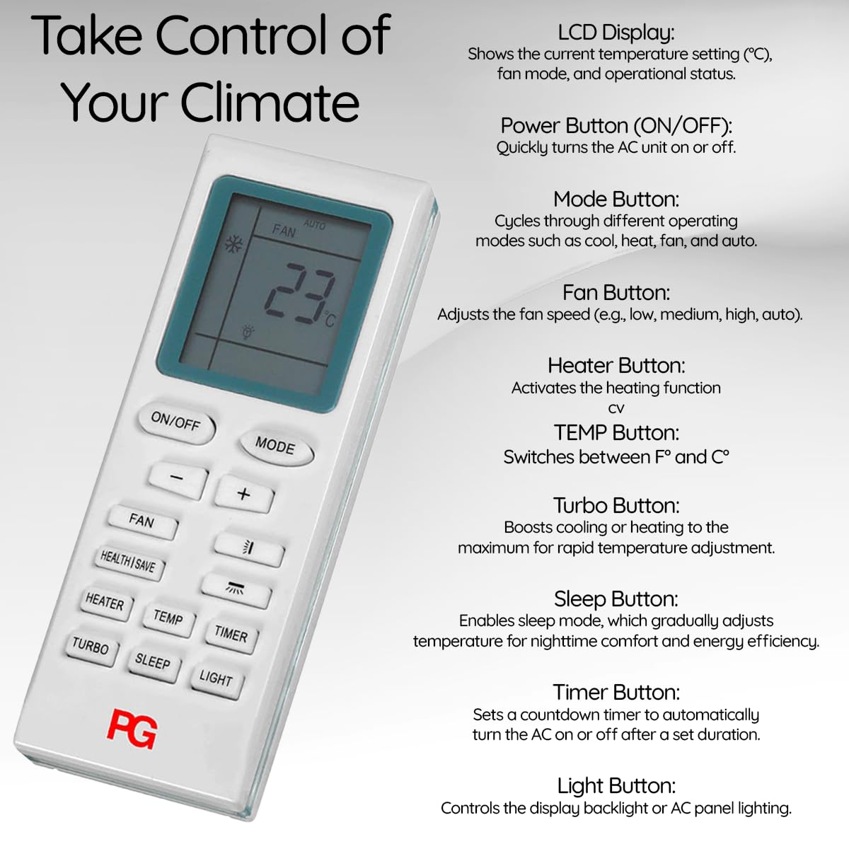 PG Air Conditioner 12,000 BTU Heat Pump, 17 SEER Energy Efficient 115V, Wi-Fi Smart Control with Alexa and Google Home